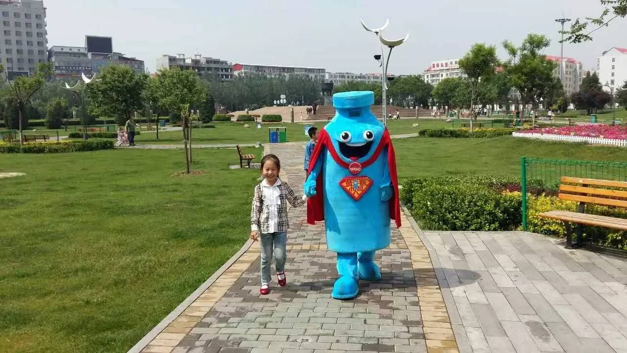 藍瓶超人與小朋友們一起互動